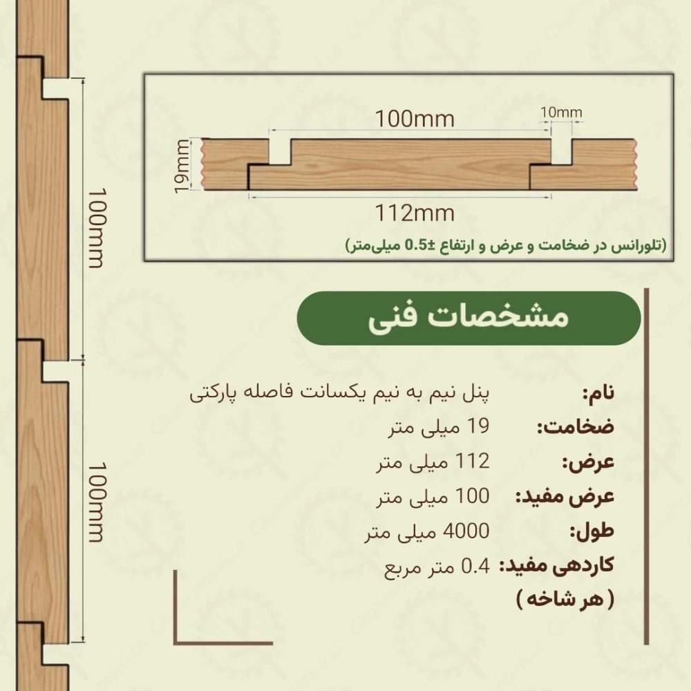 پنل پارکتی نیم به نیم یک سانت فاصله ترموود۴۰۰۰*۱۱۲*۱۹ میلیمتر